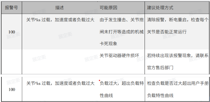 報警代碼:100關節(jié)%s 過載,加速度或者負載過大