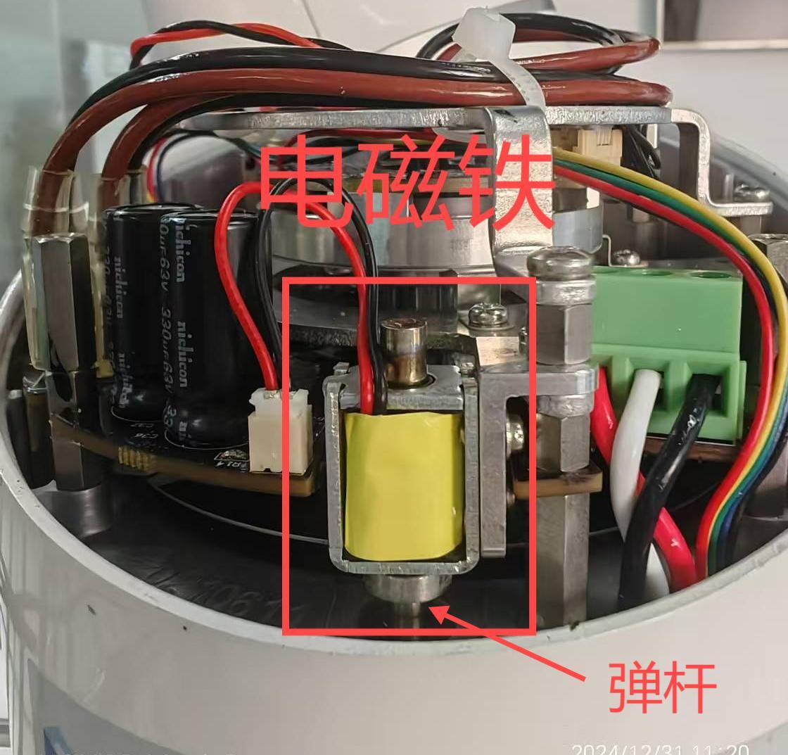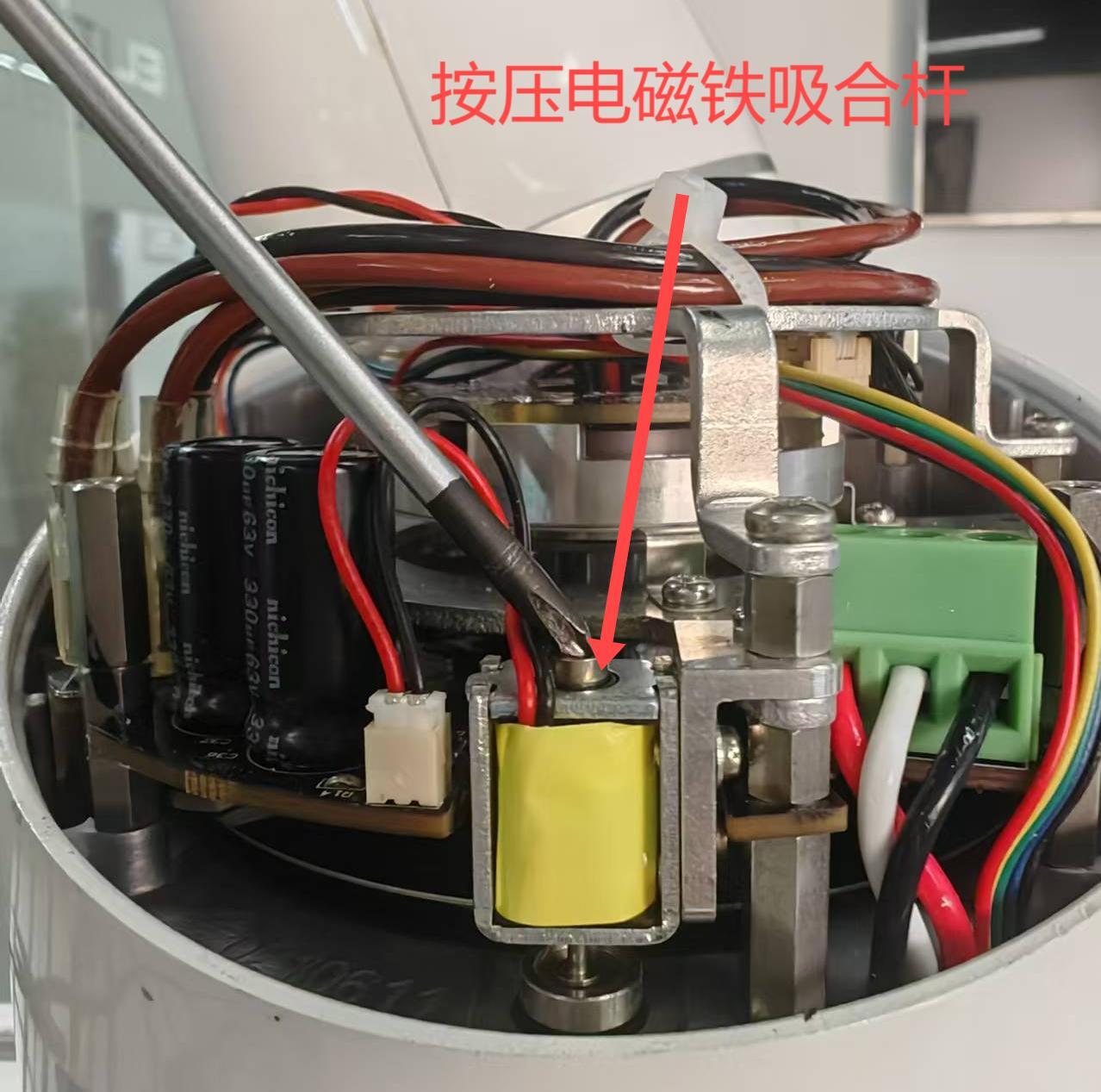 步驟三:檢查電磁鐵抱閘和減速機是否正常。1.關閉電源,將故障關節(jié)的端蓋打開,檢查電磁鐵的彈桿是否卡死或者彈桿掉落。