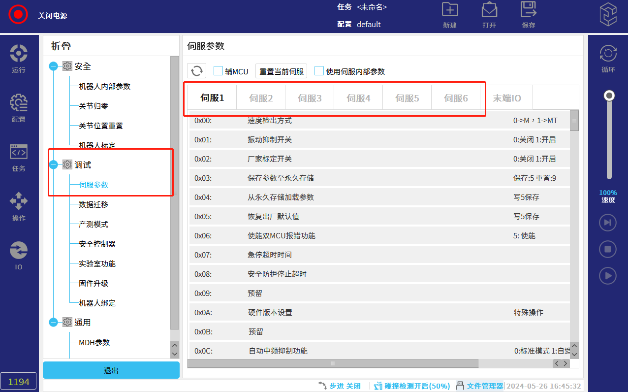 點擊伺服-伺服參數(shù),選擇對應伺服,下拉查看0x74參數(shù),