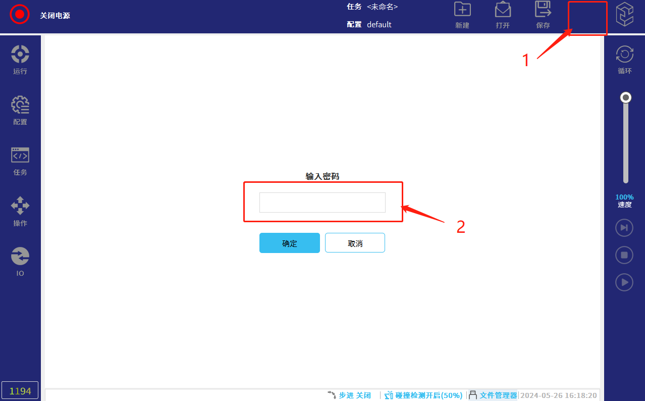 - 機器人進入下圖界面,點擊 “打開電源“