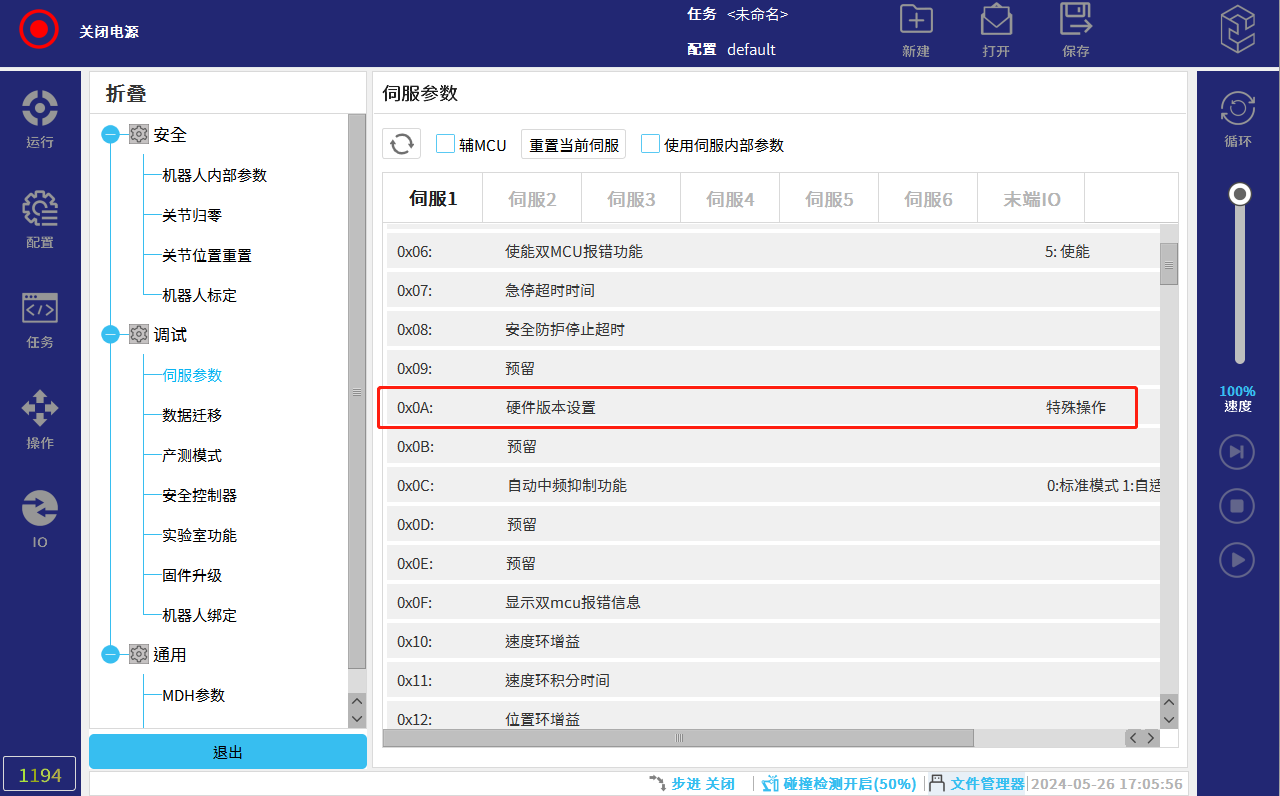 (比如截圖中的 90,表示固件為通用版本,如果為 98,則表示為彈桿抱閘,如果為 94,則表示為電磁抱閘)