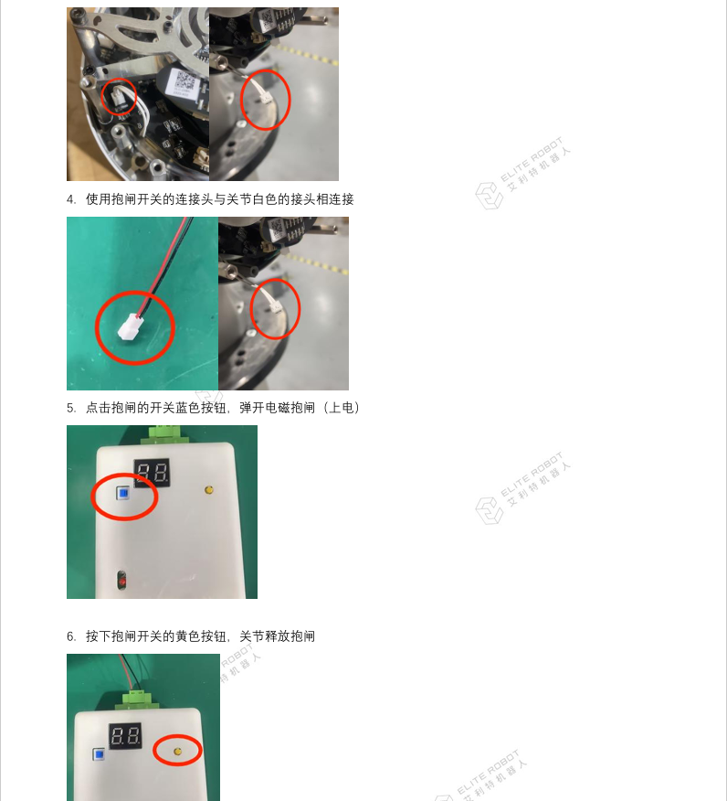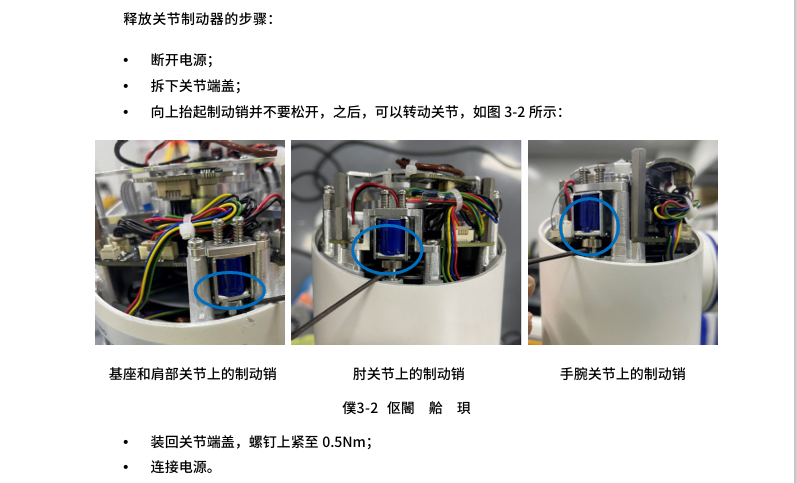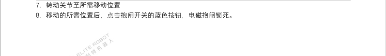 - 伺服關(guān)節(jié)損壞報警異常后無法通過以上松開抱閘方法操作,需手動松開,具體參考CS服務手冊操作指南
