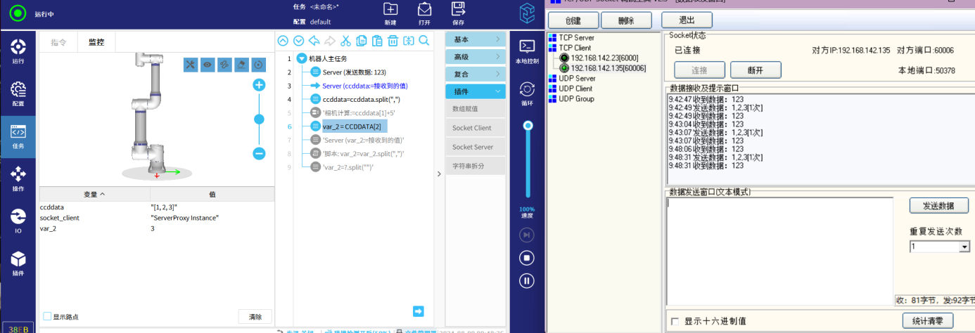 - 使用調試助手模擬視覺做(客戶端/服務端)與機器人通過收發字符串來實現簡單交互。