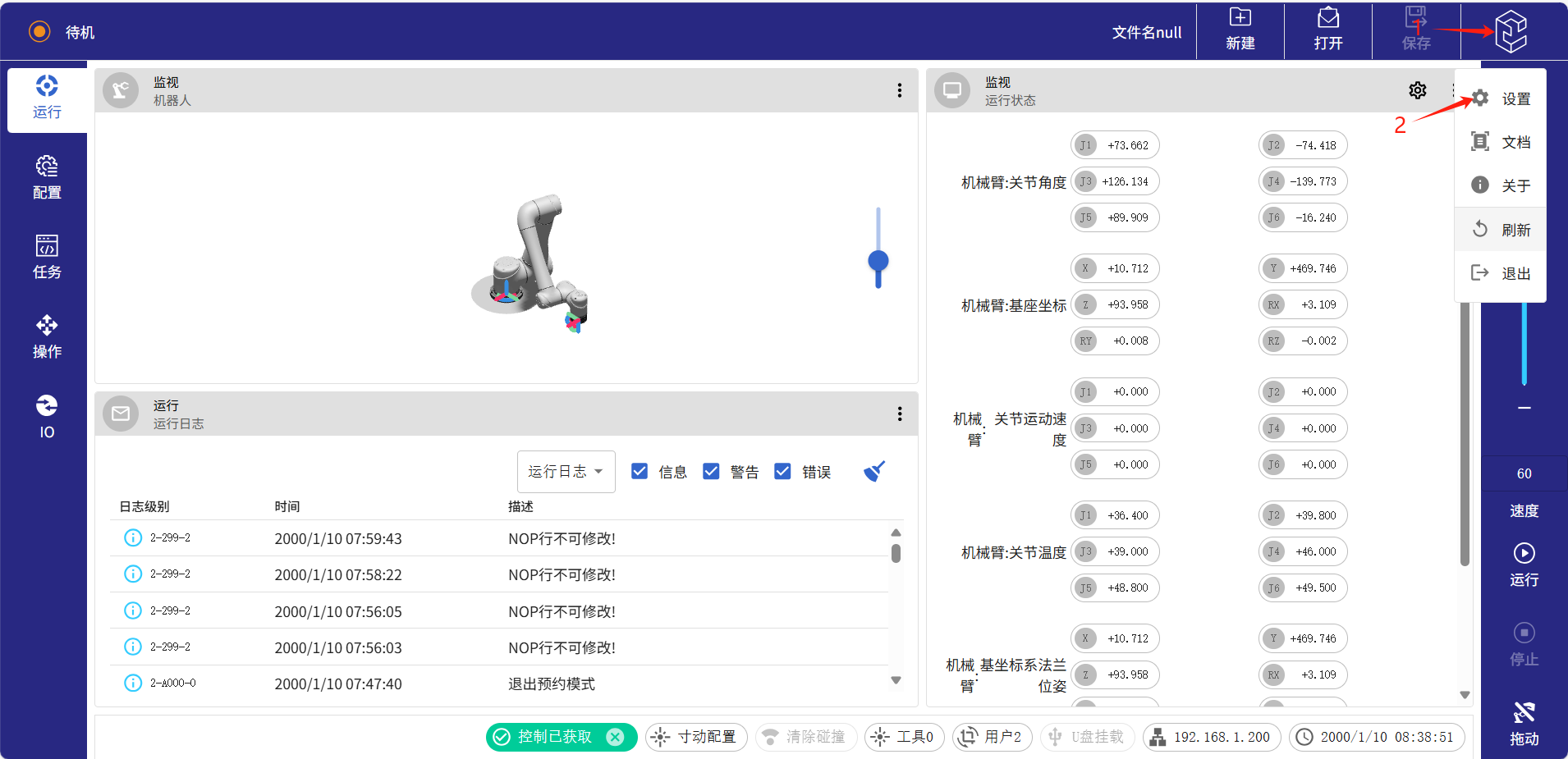 ● 先登錄網(wǎng)頁版示教器,具體步驟可看下面文檔【2.2 筆記本電腦連接網(wǎng)頁版示教器】操作步驟