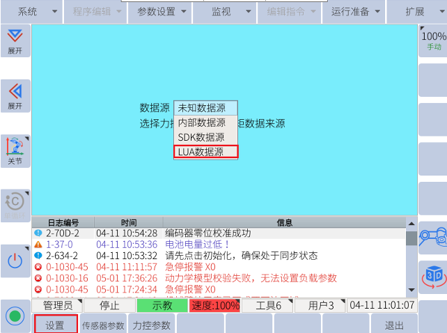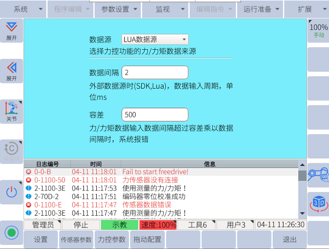擴展-力控模式配置-力控參數(shù)-輸入?yún)?shù)-點擊設置。