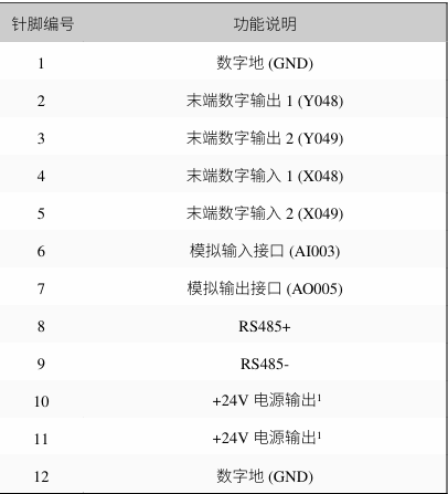 力傳感器的線可直接接在末端IO上,下圖是末端IO的對應的針腳。力傳感器通常需要接線24V,0V,RS485+,RS485-。