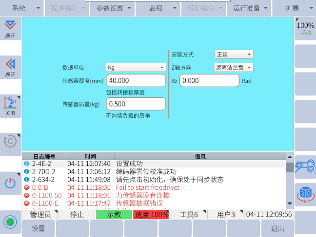 擴展-力控模式配置-傳感器參數(shù)-輸入?yún)?shù)后-點擊設置