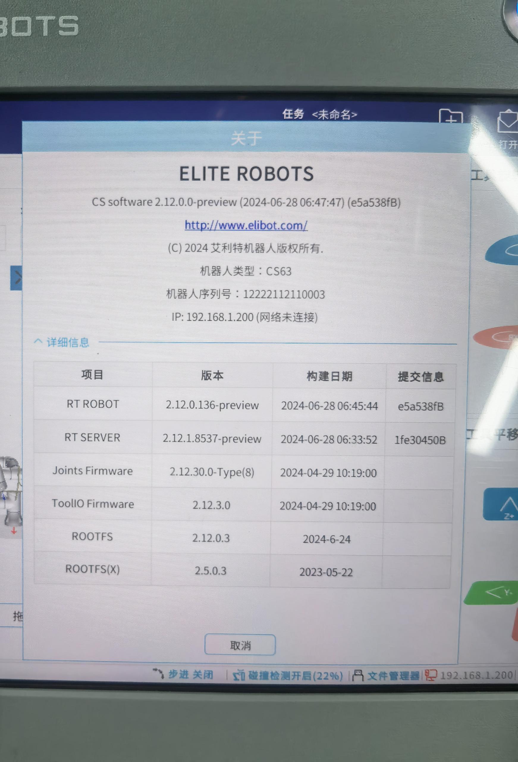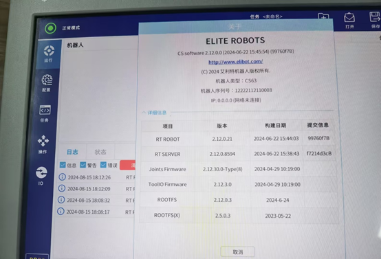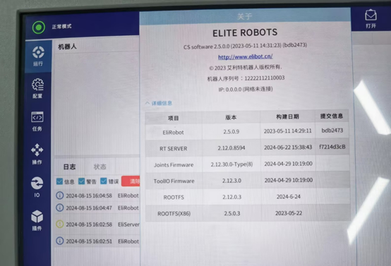 除了X86系統(tǒng)直接對應(yīng)的ROOTFS(X)發(fā)生了改變,RT ROBOT和RT SERVER也被刷新了。理論上,升級x86,會影響java所有的程序,包括上位機(jī)軟件版本,本地安裝的插件,保存的任務(wù)配置文件等。早期的x86版本中,沒有完整的應(yīng)用升級包,所以升級完x86,只有上位機(jī)版本(EliRobot新版本里叫RT ROBOT)會改變,下位機(jī)版本還是升級之前的版本。后續(xù)新版本的X86,包含了完整的應(yīng)用升級包,所以新版本x86升級完后,EliRobot和EliServer版本都會改變