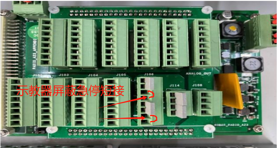 再將控制柜內(nèi)示教器的急停信號(hào)進(jìn)行短接