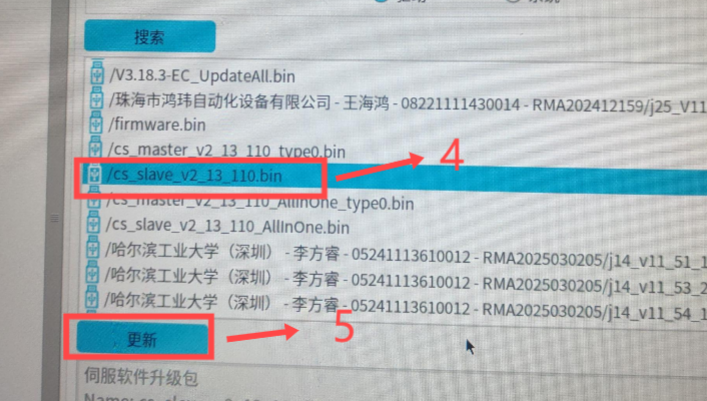 ● 選擇輔MCU:CS_slave_v2_13_110.bin,并點擊“更新”,如下圖。
