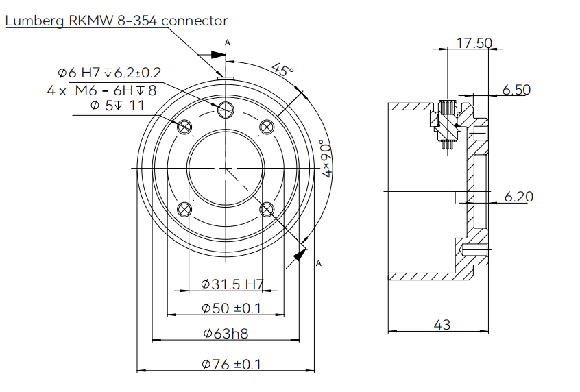 2、 如果力傳感器無法安裝到機器人末端,需要轉接板;下圖為機器人末端機械結構圖。(CS系列機器人所有末端法蘭結構都相同)