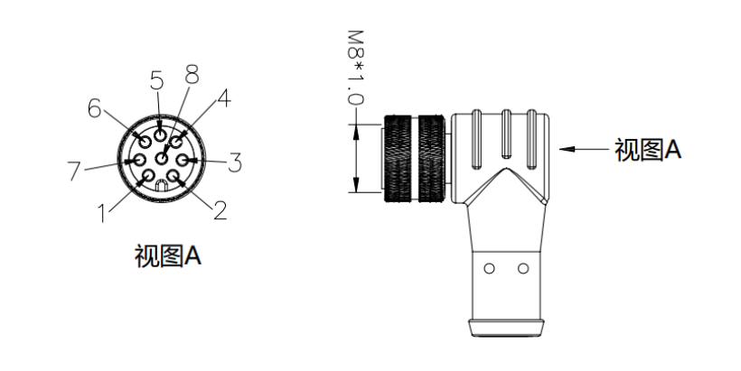 如果是用艾利特提供的8芯彎頭成型線,【物料號NA20300180】則針腳編號、線序顏色為固定排序。