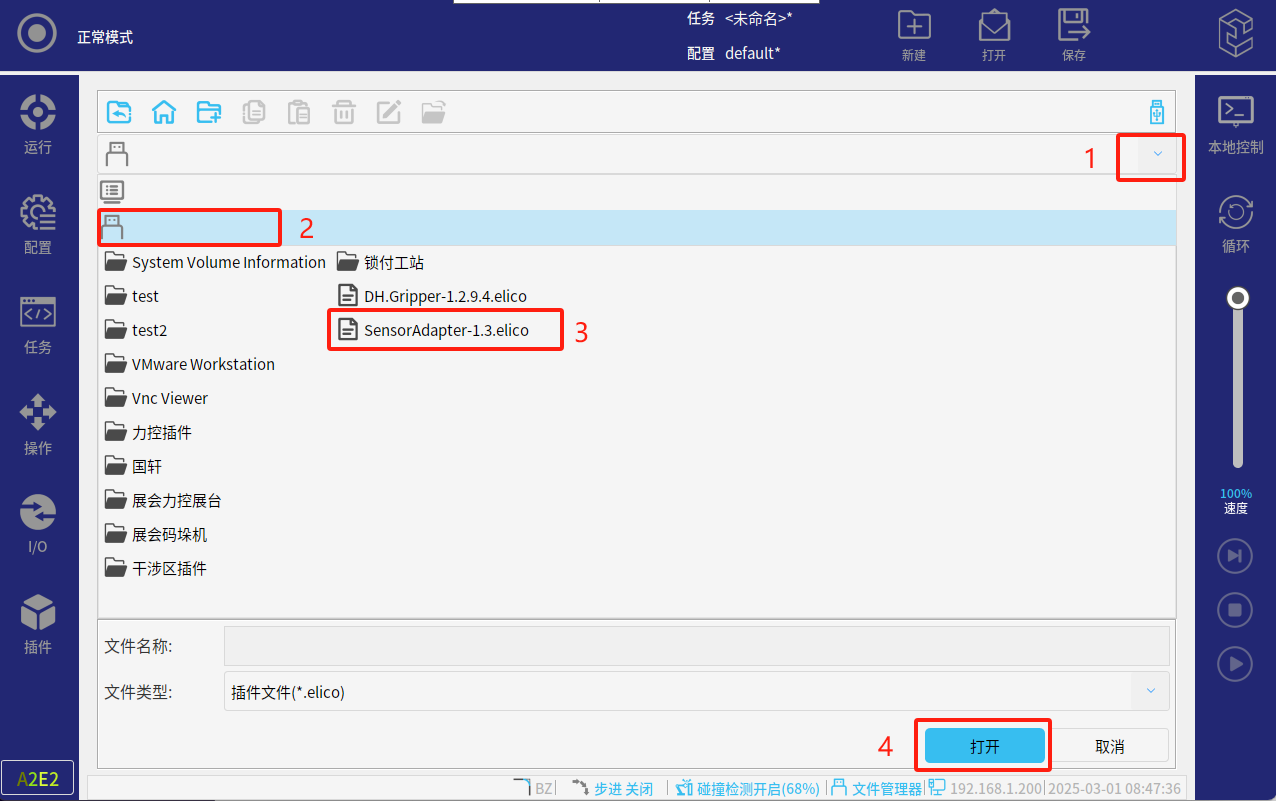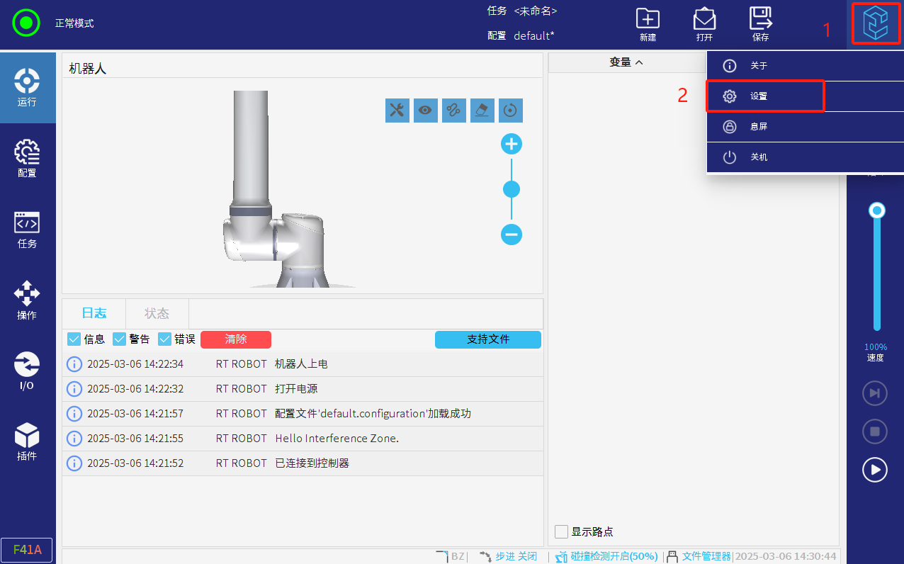 搜索級傳感器適配器插件下載并解壓;將插件【SensorAdapter】下載到U盤根目錄,將U盤插到示教器頂端USB接口后;點擊右上角圖標--進入設置