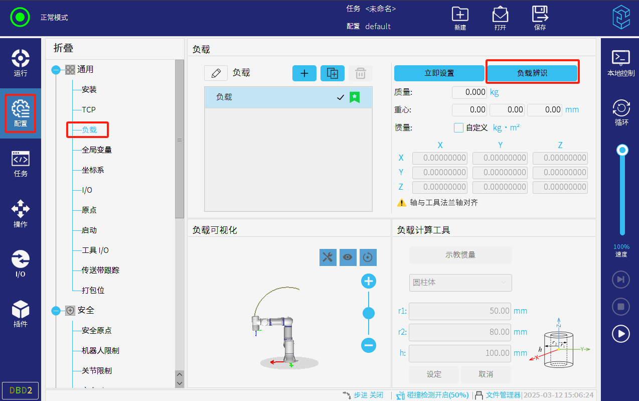 確認機器人負載設置為零