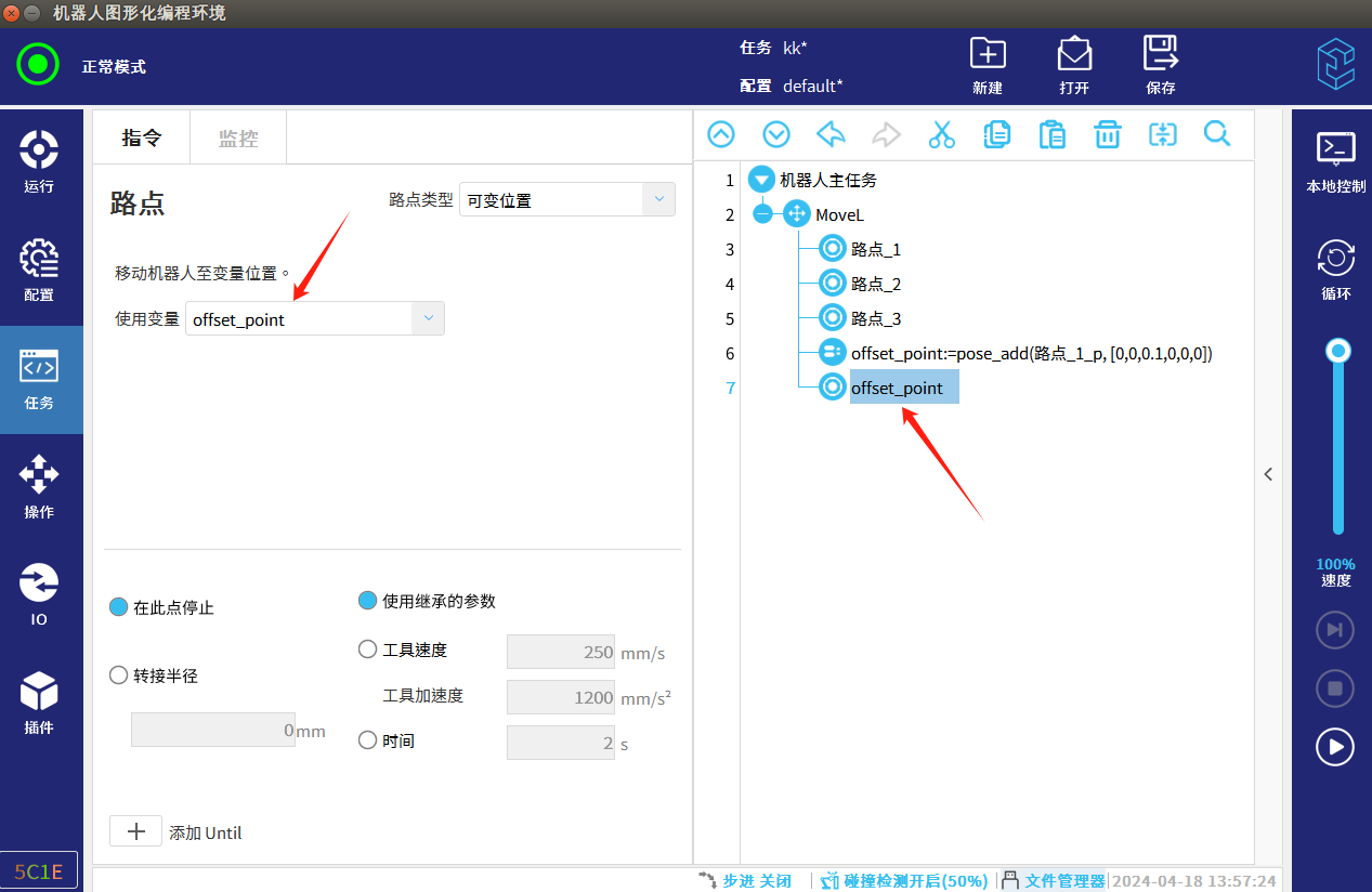 可以直接使用路點_1的值進行加減賦值給offset_point,實現點位偏移。