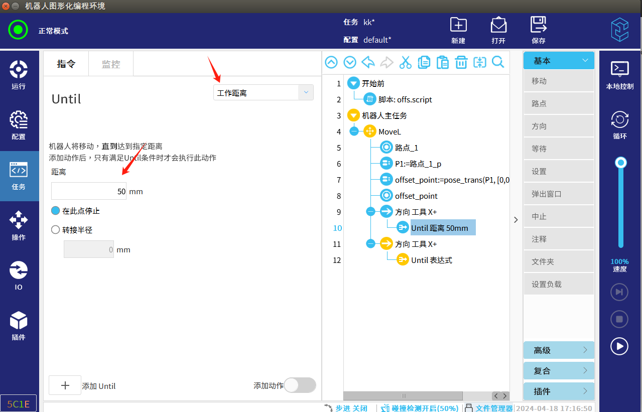 任務里基本指令自帶了方向這個指令,可以實現單方向的從當前位置進行偏移距離,相比其他偏移方式更為簡單,操作步驟如下圖