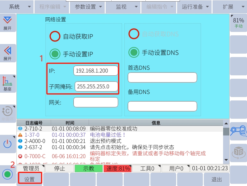 第一步-網(wǎng)線連接-機(jī)器人與PC通過網(wǎng)線連接(機(jī)器人連接接口為FB1口,通過交換機(jī)中轉(zhuǎn)也可以實現(xiàn))