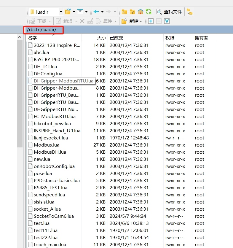 lua腳本上傳下載和jbi上傳下載方式一致。(lua修改時沒有不受示教器程序是否打開的影響)