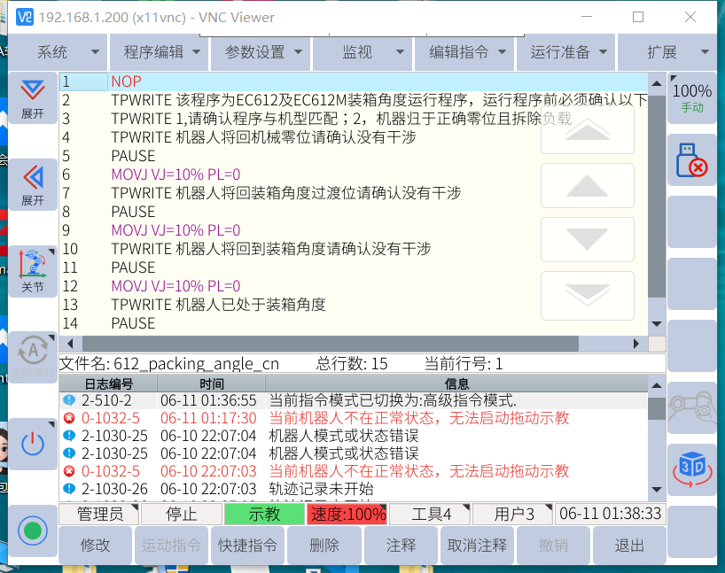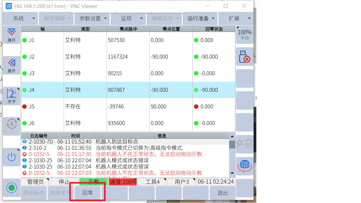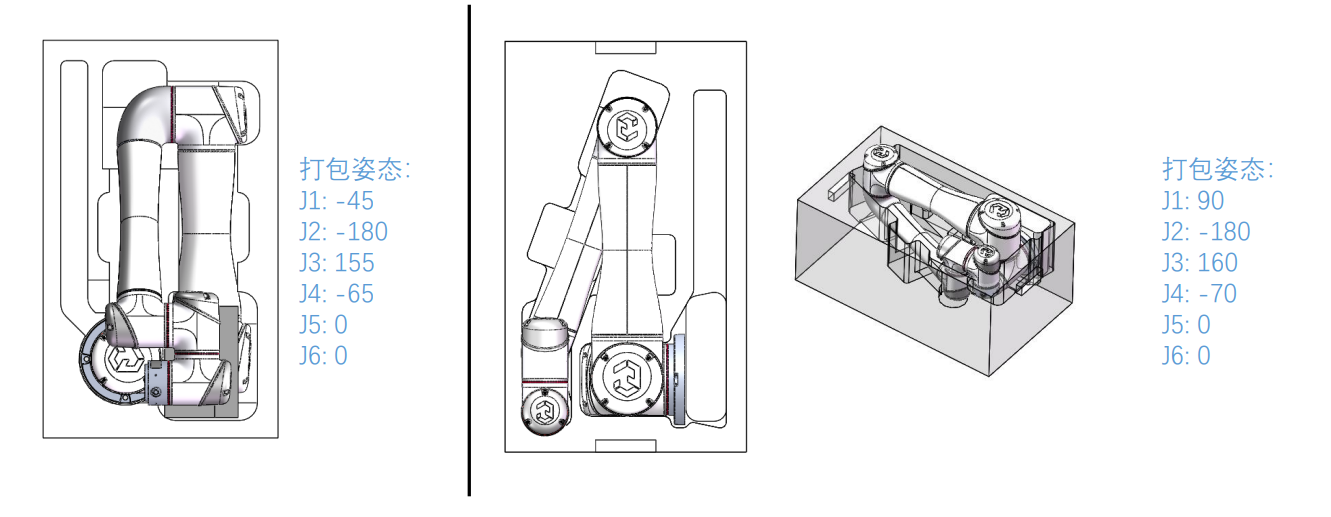 打包姿態(tài)角度:J1: -45 J2: -180 J3: 160 J4: -60 J5: 0 J6: 0